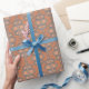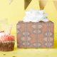 Este papel de embrulho tem um design de arte de três ovais de salmão repartidos por dois retângulos de salmão muito finos, com linhas azuis ardentes num campo de ferrugem. Quer o mesmo design com cores diferentes? Me mande mensagem.