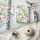 This Surfing Santa Christmas in July Coastal Wrapping Paper features jolly Santa in a Hawaiian floral shirt and red shorts, riding bright turquoise waves under swaying palm trees.