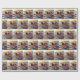 Santa Claus joyfully navigating a speedboat, with a festive red bag overflowing with toys spilling out as he glides across the water