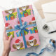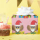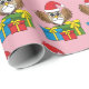 Uma ilustração de uma coruja de Papai Noel fofa com chapéu de Papai Noel vermelho e presentes verdes, vermelhos, azuis com fita amarela. Este adorável pássaro de olhos grandes com barba longa e bigode está pronto para celebrar seu Natal mágico. E você? Seus presentes estão prontos?