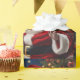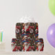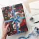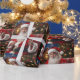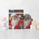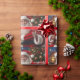 Papel de embrulho com uma imagem de Santa Cláusula, que sorri e acenando, sentado em frente a uma Árvore de Natal. Esta design foi criada por Debbie Quick, de Imagens Criativas Debs: www.debscreativeimages.com