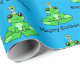 Sapo verde e branco com embrulho de presente de chapéu de aniversário.