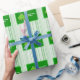 Personalize este papel de embrulho fofo com o nome do destinatário. Design tem faixas verdes e brancas com caixa de texto verde e sapo verde feliz. Altere o texto do marcador de posição para a sua mensagem ou nome.