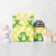 Sapos verdes bonitos sobre fundo de gingham amarelo e branco.