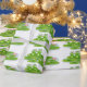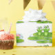 Par de sapos verdes bonitos em almofadas de lírios com flor de lírio de água rosa em água ondulada em branco.