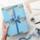 Um design retrô apresenta as palavras "Saudações do Offline" com uma cena de praia e oceano incorporada às letras.