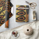 seamless pattern in scandinavian design style. Retro mid century modern inspired background in vintage colors with isolated linen cotton woven cloth texture. Stylized flowers and leaves geometr