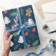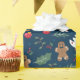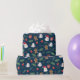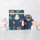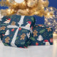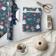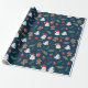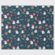 This is a wrapping paper that has a Christmas type of design with a dark background. It shows Santa and other ornaments.