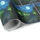 Um caminho iluminado pela lua serpenteia por um labirinto de sebe de Halloween, onde olhos brilhantes e mãos que se estendem emergem da folhagem