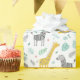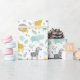 Bons animais da selva neutra do ponto de vista do gênero, de cor macia: zebra, girafa, leão, hipopótamo com folhas da selva e flores em fundo branco.