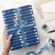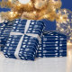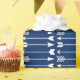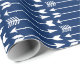 Um design da seta do divertimento no branco em um fundo de azuis marinhos clássicos.