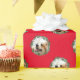 Posicione seu cachorro favorito em uma coroa de natal com uma adorável capa de presente de Natal personalizada em vermelho. Seus amigos e família vão adorar!