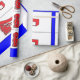 Papel De Presente Sevens afortunado no tema branco e azul vermelho