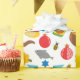 Padrão de excelente para embrulhar presentes de Rosh Hashanah. Shana Tova com símbolos judeus tradicionais em fundo branco.