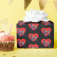 Shh Tzu silhueta de cachorro com borboletas coloridas vermelhas, azuis e amarelas padrão de abstrato no coração vermelho de amor em um papel de fundo preto. Um presente de dia de Namorados para um cão adorável para qualquer mãe de cão ou amante de animais de estimação pai.
