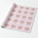 Custom birthday wrapping paper for an 8 year old girl featuring cute rainbow theme on a soft pink background. An image of a 3D balloon style, pastel pink number "8" is placed over a cute chubby and shiny rainbow. Cute little hearts accent the area. A sample "HAPPY BIRTHDAY" greeting is printed above, with a sample name printed below. You can personalize the wrapping paper to include your own custom name or other text.