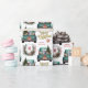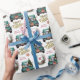 Um caminhão azul-lacre carregar uma árvore de Natal decorada e pacotes de presentes neste belo papel de embrulho de presente. Um lindo cão Siberiano Husky olha do portão. Um cartaz de madeira rústico na pára-choque diz "Feliz Natal". Seu monograma está contido em um bonito cone de pinho e uma coroa de morango vermelha, e o texto em ouro estilizado diz "Feliz Natal". Você também pode personalizar a seção "do (Nome).