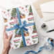 O padrão repetido neste papel de embrulho de Natal inclui uma imagem de um pequeno filhote Husky Siberiano sentado num cesto mais vago cheio de flores. A cesta é decorada com um arco vermelho, e se senta ao lado de uma árvore de Natal. O texto vermelho estilizado e verde diz MERRY CHRISTMAS", e sua própria assinatura está em dois campos para você personalizar. Outras imagens incluídas no padrão incluem flocos de neve decorativos vermelhos, canas doces e um pop de hortelã-pimenta.