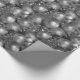 Um papel brilhante e brilhante de embrulho de Natal com um padrão festivo de decorações de árvores de Natal prateadas e baubles para adicionar alguma reluz e glamour ao seu presente de Natal que embrulha esta época de Natal.