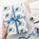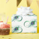 O símbolo do infinito com uma pena brilhante, verde, de pavão artístico sobre um fundo branco. Tatuagem.