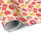 Celebrar o Ano Novo Lunar Chinês com os nossos Símbolos Festivos Chineses de Ano Novo Molhando Papel de presente com um padrão moderno com ilustrações de moedas de ouro, floradas, máscaras de dança de leão, fãs, biscoitos da sorte, salgadinhos, símbolos de yang, envelopes vermelhos e lanternas vermelhas em um fundo bege claro.
