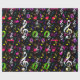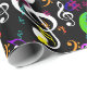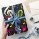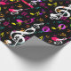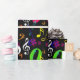 Símbolos e notas musicais coloridos com música, notas, clf, triplo, quaver,baixo,crochê sobre fundo negro
