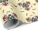 Padrão sofisticado e simétrico de mandala tribal com detalhes elegantes em vermelho e azul sobre um fundo creme quente. Este design profissional traz um toque calmante e artístico para qualquer decoração de quarto moderno."