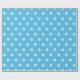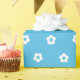 Pattern of small white flowers evenly spaced on a bright blue background. The design is simple and playful, creating a cheerful and lighthearted tone.
