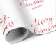 Papel de embrulho de férias bonito, com tipografia moderna e um design simples, com "Feliz Natal", em uma elegante escrita vermelha, juntamente com o nome do receptor. Este papel de embrulho personalizado certamente adiciona um toque festivo ao seu presente de Natal.