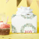 Papel de embrulho de Natal elegante, com "JOY" em vermelho, cercado por uma coroa verde. Este papel de embrulho de férias certamente adiciona um toque festivo aos presentes de Natal.