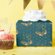 Esse papel elegante e glamouroso de embrulho é versátil e pode ser usado para dar presentes ou projetos de arte e artesanato. É ideal para qualquer ocasião como Natal, aniversários, casamentos, chás de panela, chás de fraldas, aniversários ou presentes gerais. A design apresenta sinos de Natal dourados num fundo azul teal. Perfeito para o feriado.