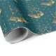 Papel De Presente Sinos de Natal Dourados e Teais Azuis