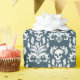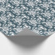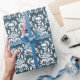 Papel De Presente Skull Flame Damask em branco nítido em azul-estilh