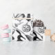 Essa design apresenta ilustrações de ícones do Dia das Bruxas como abóboras, morcegos, gatos pretos, vassouras, caldeiros de aranhas, chapéus de bruxa e mais em preto sobre fundo branco. Fábrica para festas de Halloween e comemorações. #halloween #party #skull #bompkin #cat