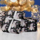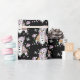 Um bonitinho bonitinho festivo com chapéu de cachecol rosa e mitenes festivos papel de embrulho de Natal.