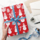 Papel De Presente Snowman Stars Feriado Vermelho Fresado Fresado Grá