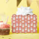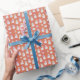 Neves com chapéus e lenços verdes, vermelhos, amarelos e roxos coloridos num fundo laranja.