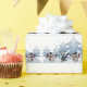 Este é um rolo de papel de embrulho de presentes de Natal com bonitos bonitos bonitinhos de neve e renas dançando ao redor de árvores de abeto. O esquema de cores é azul frio.