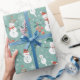 Papel De Presente Snowmen Snowflakes Holly deixa o Natal verde