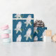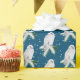 Coruja de neve no pinheiro de inverno com flocos de neve em fundo azul. A cor de fundo pode ser alterada.