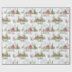 Este papel de embrulho de Natal apresenta cabanas de madeira cobertas de neve e cabines vermelhas de estrutura A com cervos e renas na neve.