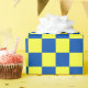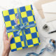 Encerre qualquer presente com este belo papel de embrulho. Os quadrados azuis e amarelos criam um padrão divertido e festivo que é perfeito para aniversários, feriados, ou apenas porque.