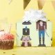 design de padrão colorido, moderno e divertido de um soldado de brinquedo maluco vestido de creme e azul, com uma espada no cinto. Fundo de verde limão pálido. Arte e design por Mira