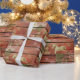 Vista acima seus presentes com este design do vintage de um cavalo e de flores de balanço contra um fundo de madeira. O design é mostrado no papel matte, mas outras escolhas estão disponíveis.