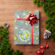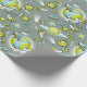 A Kids Gray, Green And Yellow Space Traveler Birthday Wrapping Paper Designed With Planets, Comets And Astronaut