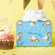 Comemore a época natalícia com os presentes envolvidos neste papel de envolvimento bonito coberto com poucos filhotes de cachorro do Spaniel de Clumber que vestem chapéus da meia entre flocos de neve e as palavras, Howlidays feliz! Grande ideia do presente de época natalícia para família e amigos Clumber-loving.