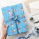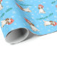 Comemore a época natalícia com os presentes envolvidos neste papel de envolvimento bonito coberto com os filhotes de cachorro pequenos do Spaniel de Springer inglês que vestem chapéus do papai noel entre flocos de neve e as palavras, Howlidays feliz! Grande ideia do presente de época natalícia para família e amigos Springer-loving.