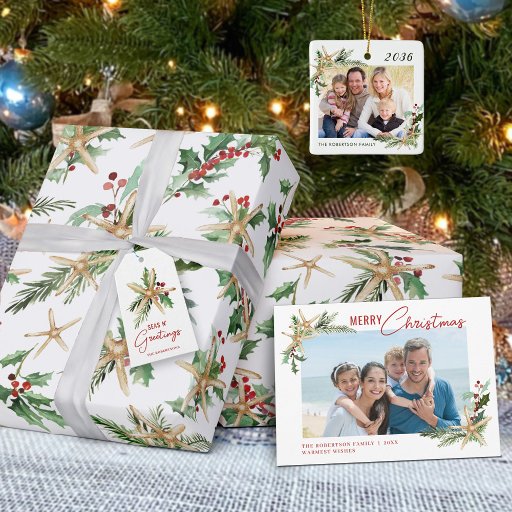 Papel De Presente Starfish e Holly da praia do Natal tropical