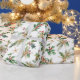 Esta praia tropical, com o tema de papel de embrulho de Natal, apresenta um padrão litorâneo de estrelas-do-mar, folhas e bagas ocas, e pinheiro, sobre fundo branco.