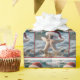 Um peixe-estrela veste um chapéu de Papai Noel e óculos de sol enquanto está em águas rasas do oceano